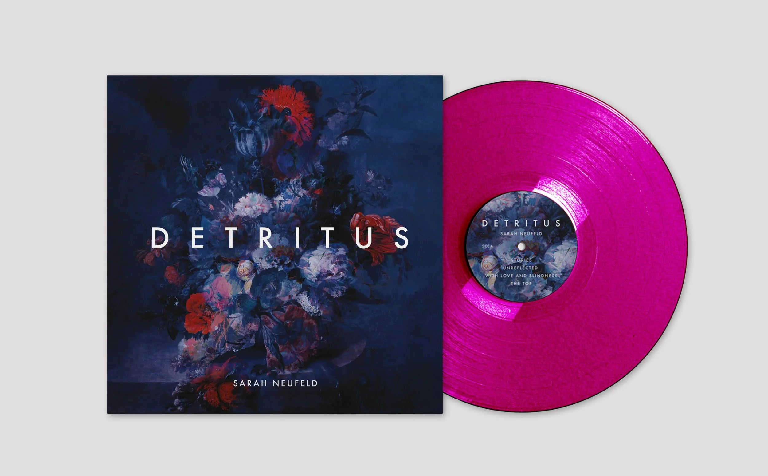 For Sarah Neufeld’s (Arcade Fire, Bell Orchestre) solo album I was struck by the intensity and grace of the music and wanted to contrast the title with imagery that was hopeful but also layered and dark. I created digital collages by layering images of dutch still life paintings together, manipulating and replacing the original color and pushing the images until they blended and broke apart. When viewed from a distance the image resolves into a floral arrangement but when viewed close up the flowers start to merge into one another and break up in unexpected ways. For the back cover and singles art I created additional layered collages that were combined with portraits of Sarah.